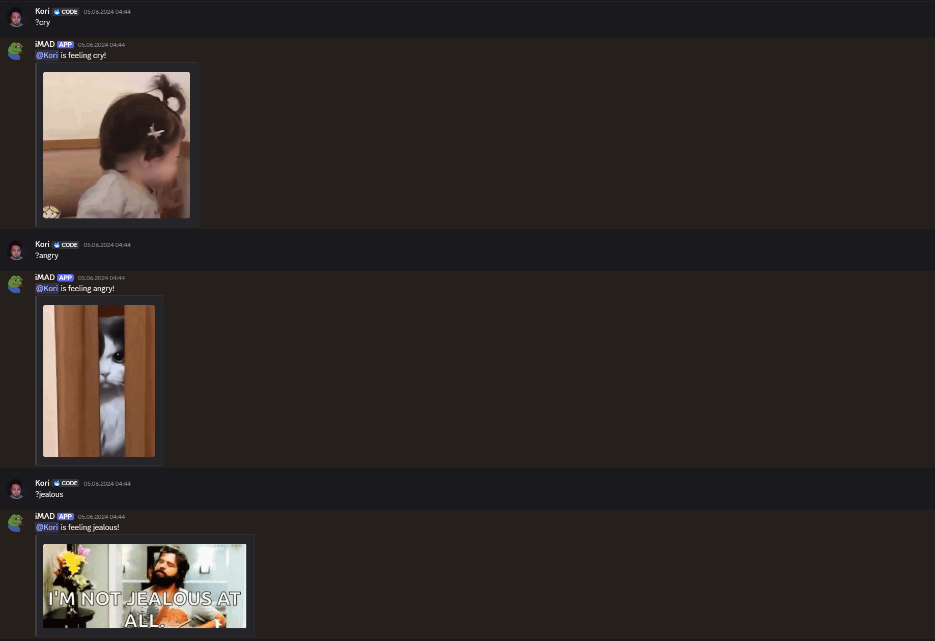 Ein Discord Bot, welches zur Belustigung auf Kommando verschiedene Tenor Meme Gifs zufällig auswählt und sendet.